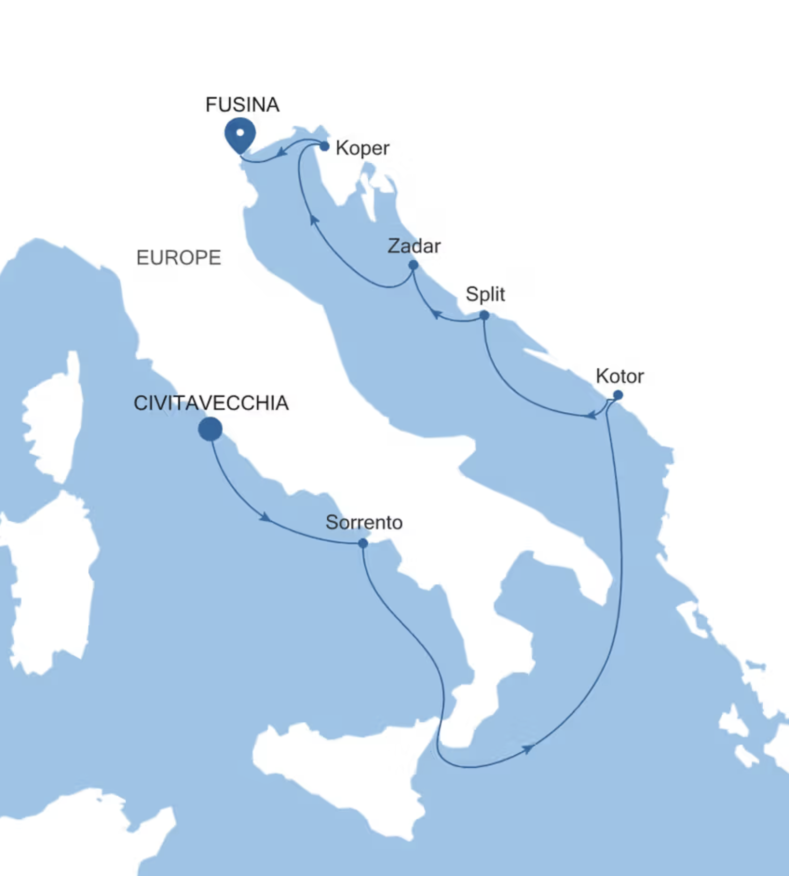 From Sorrento’s clifftop terraces above the Bay of Naples to the medieval old town of Kotor nestled beneath its city walls, the Venetian-influenced architecture of Split and Zadar, and the Slovenian port of Koper, this is an itinerary that showcases the very best of the central Mediterranean and Adriatic. The voyage concludes in Venice, one of the world’s most extraordinary cities.