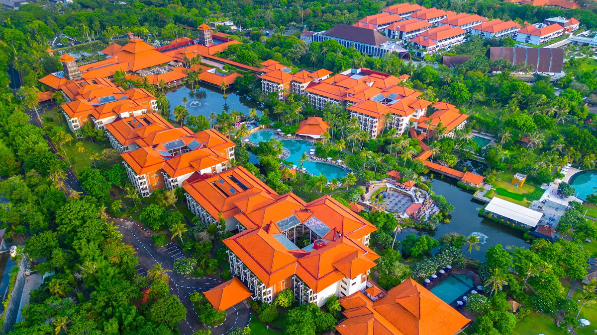 Your journey begins in Nusa Dua, Bali’s smart southern resort famous for its wide sandy bay and calm waters. Ayodya Resort Bali sits right on the beachfront, with traditional Balinese design, lush gardens and plenty of space to unwind.