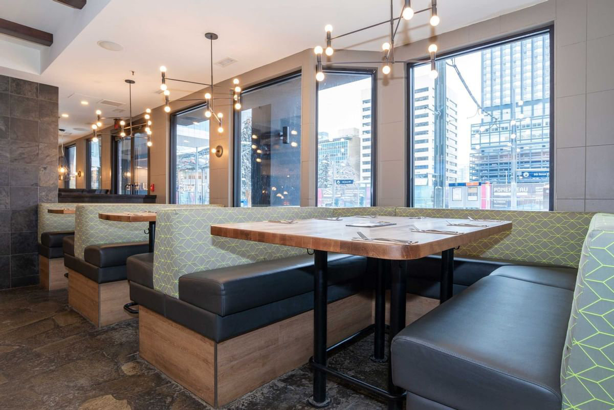 The hotel sits directly on Calgary’s light-rail transit line, so it’s easy to hop on the C-Train to reach key attractions such as the Calgary Tower, Stampede Park, the zoo and the TELUS Convention Centre. Calgary’s buzzing 17th Avenue retail and dining district is just a short walk away, packed with shops, bars, patios and restaurants—perfect for your first taste of the city before you head into the mountains.