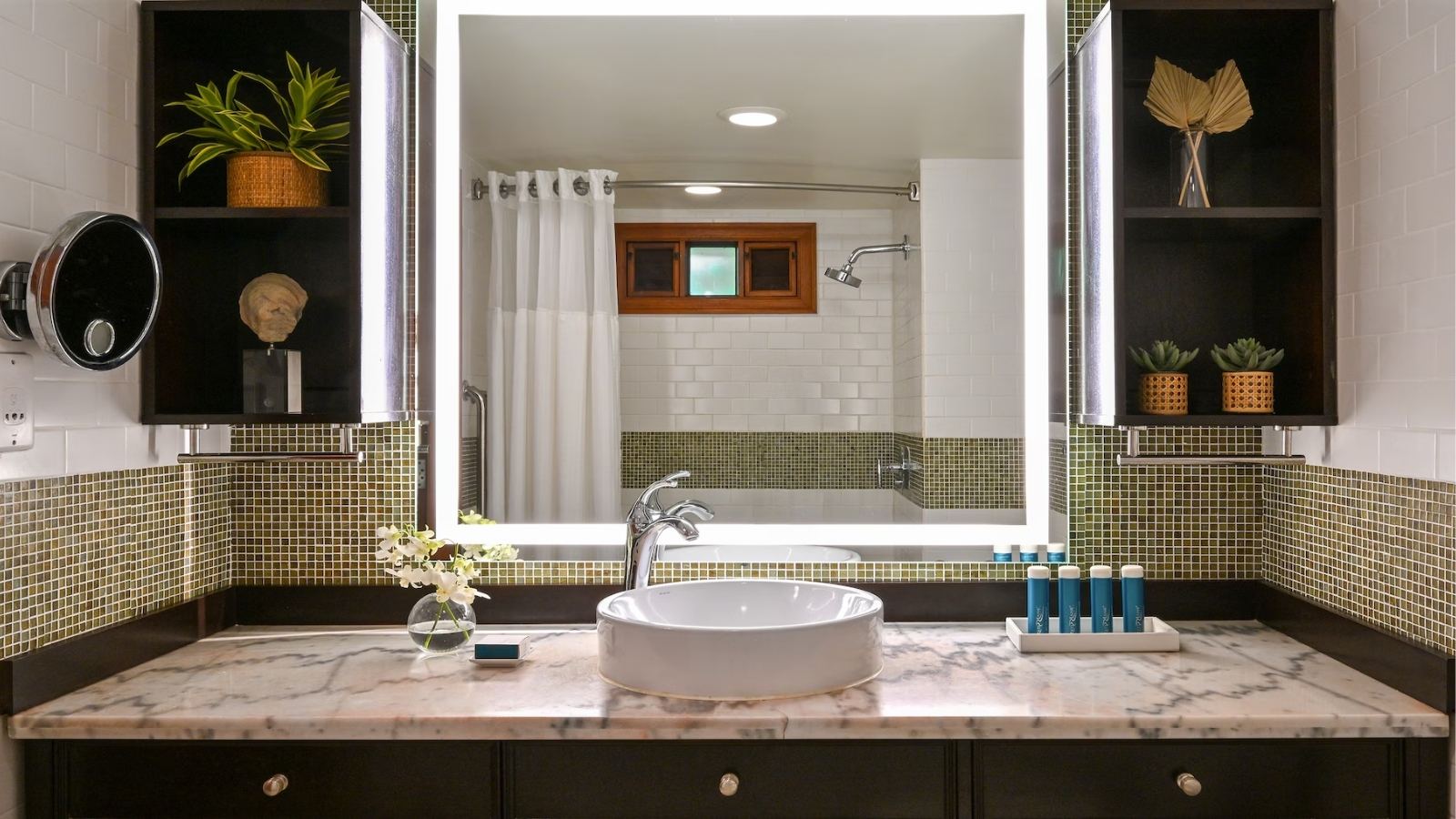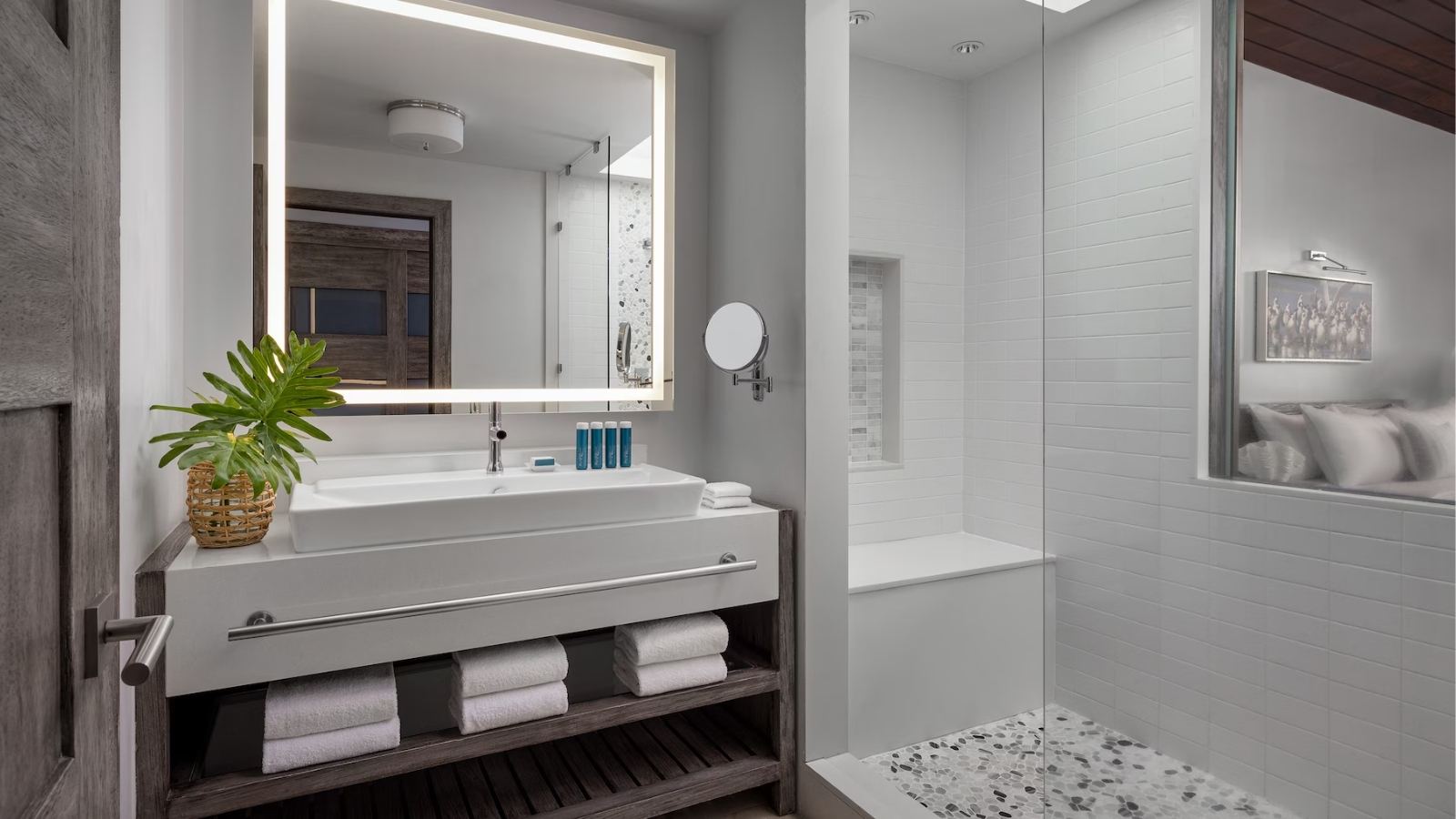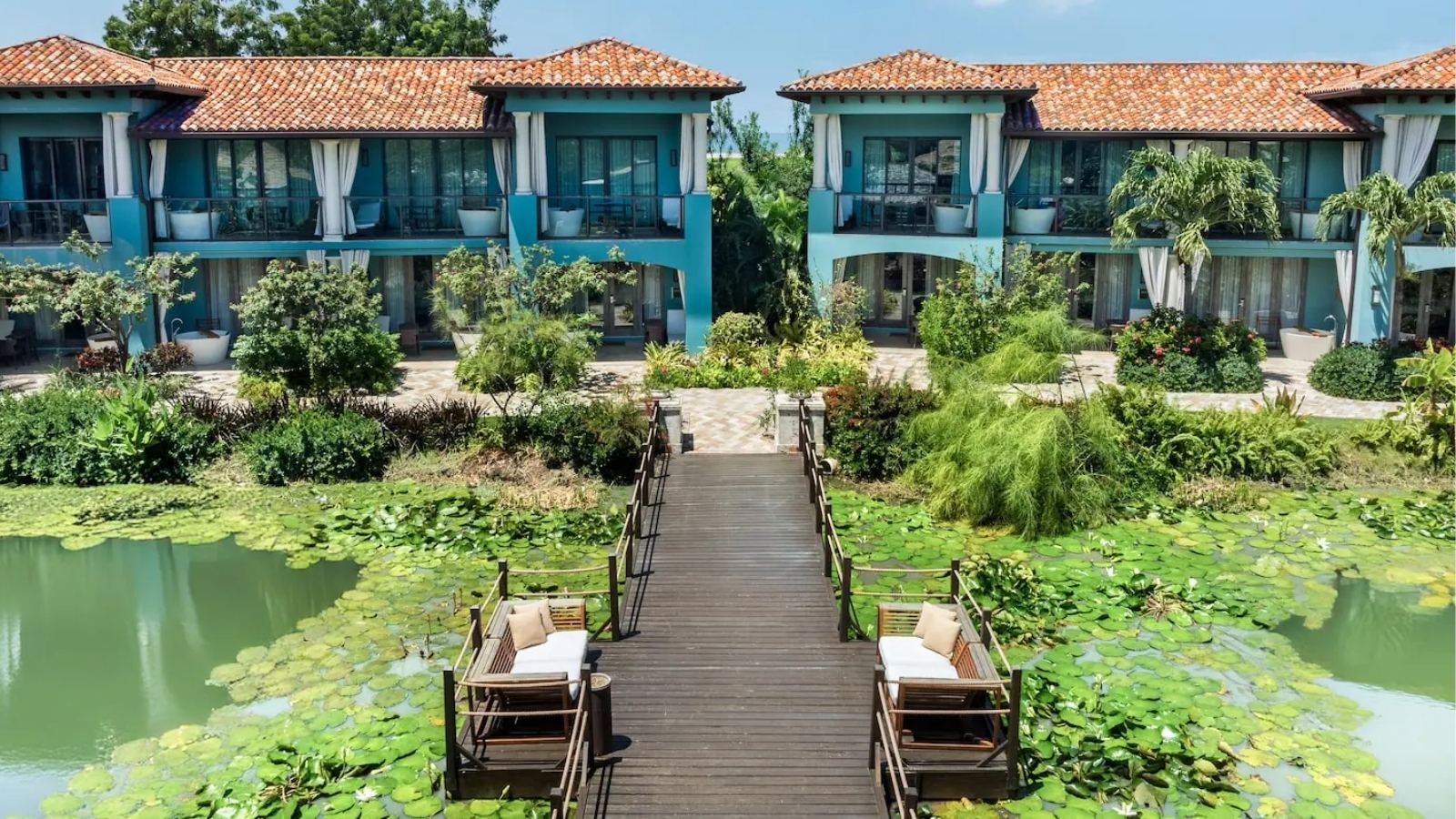 Set within the resort’s lush Lover’s Hideaway Village, these suites overlook a freshwater lagoon and feature a private balcony with an outdoor Tranquility Soaking Tub for two. Inside, find a four-poster king bed, smart TV, and contemporary bathroom with oversized shower. The stocked fridge includes Robert Mondavi wines, bottled water, soft drinks, and local beers, refreshed daily.