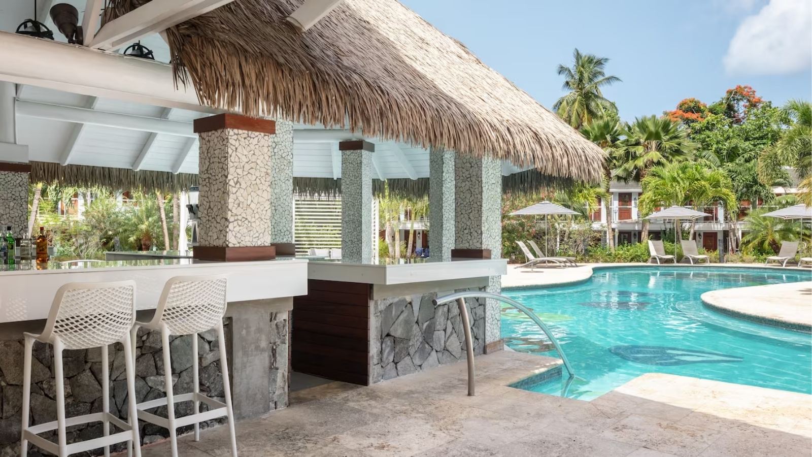 Your Club Level room opens directly onto the serene Crystal Lagoon pool, complete with a furnished patio and easy water access. Inside, find a king-size bed, smart TV, stocked minibar with premium spirits, and a spacious bathroom with a soaking tub and rain shower. Club Sandals concierge service arranges priority dining, spa bookings, and excursions, ensuring a seamless stay.