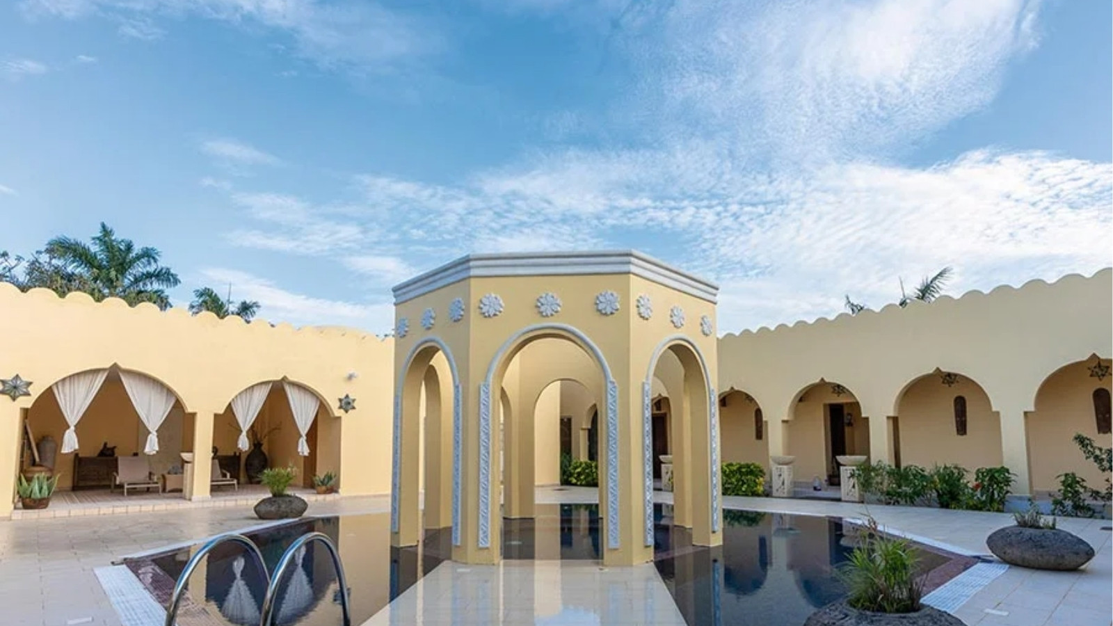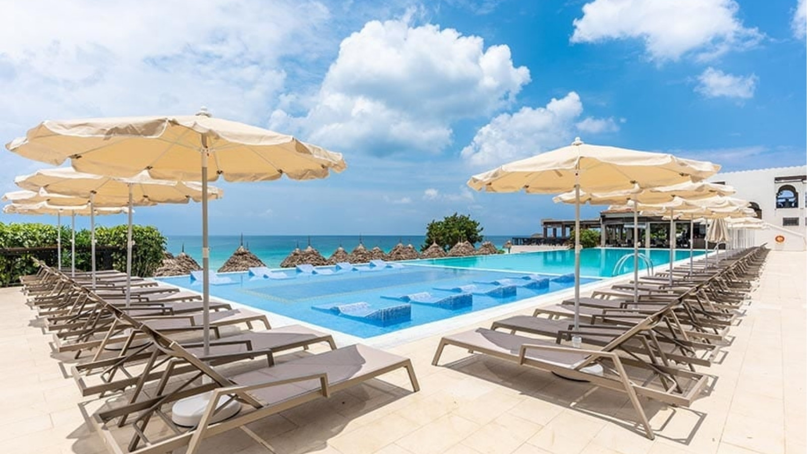 Enjoy nine nights at Riu Palace Zanzibar on an all-inclusive basis. Your stay features a Swim-Up Junior Suite with direct pool access, four restaurants offering international and local cuisine, and multiple bars serving premium drinks. Relax in three ocean-view pools, unwind at the spa and enjoy complimentary fitness classes and water sports throughout your stay.