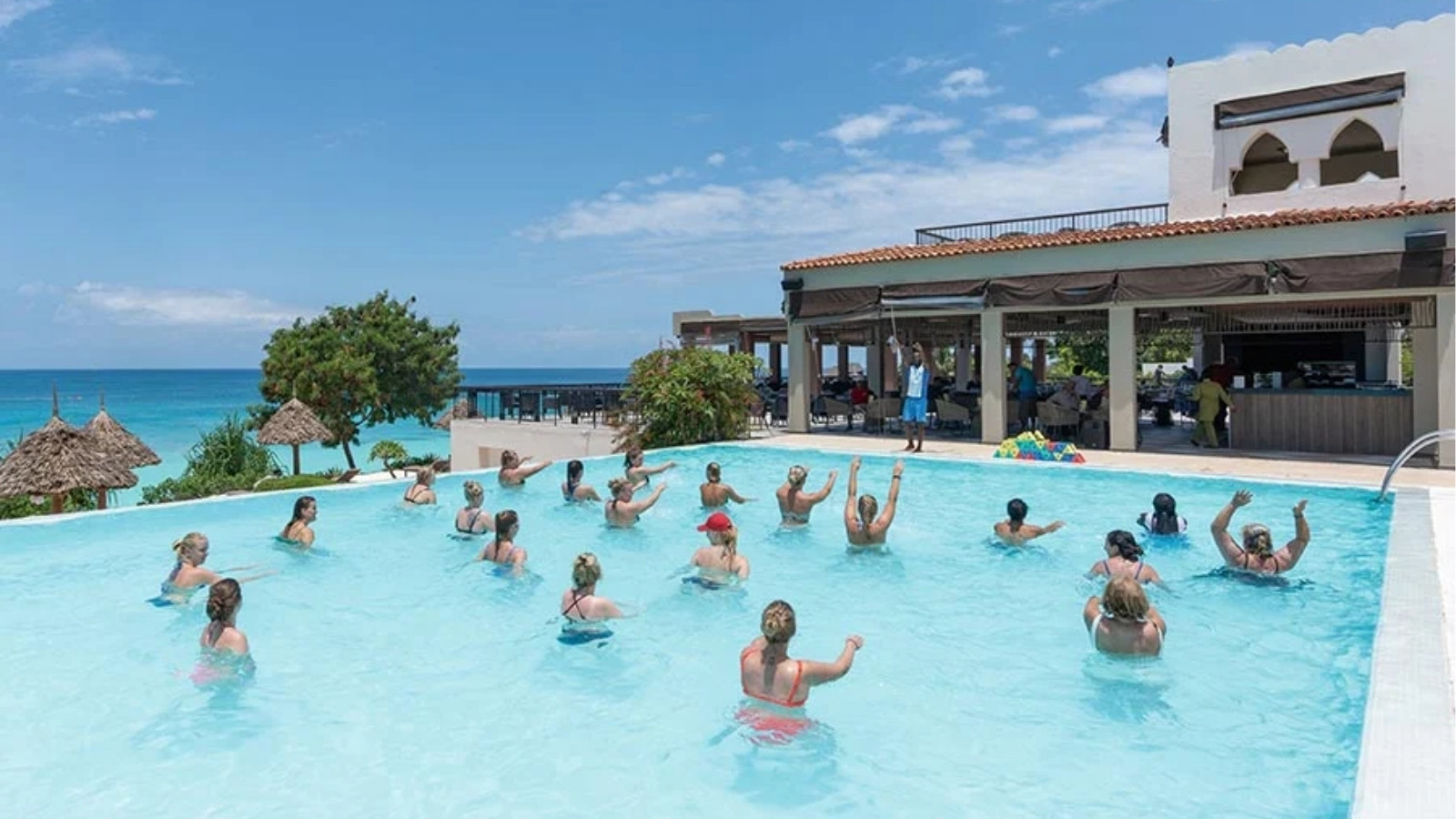 Zanzibar is a paradise for adventure and culture. At the resort, guests can try paddle boarding, kayaking, or introductory scuba sessions in the pool. Evenings come alive with live music, cultural shows, and themed entertainment. Beyond the resort, excursions to Stone Town, spice plantations, or Mnemba Atoll can easily be arranged for a taste of local history and marine life.